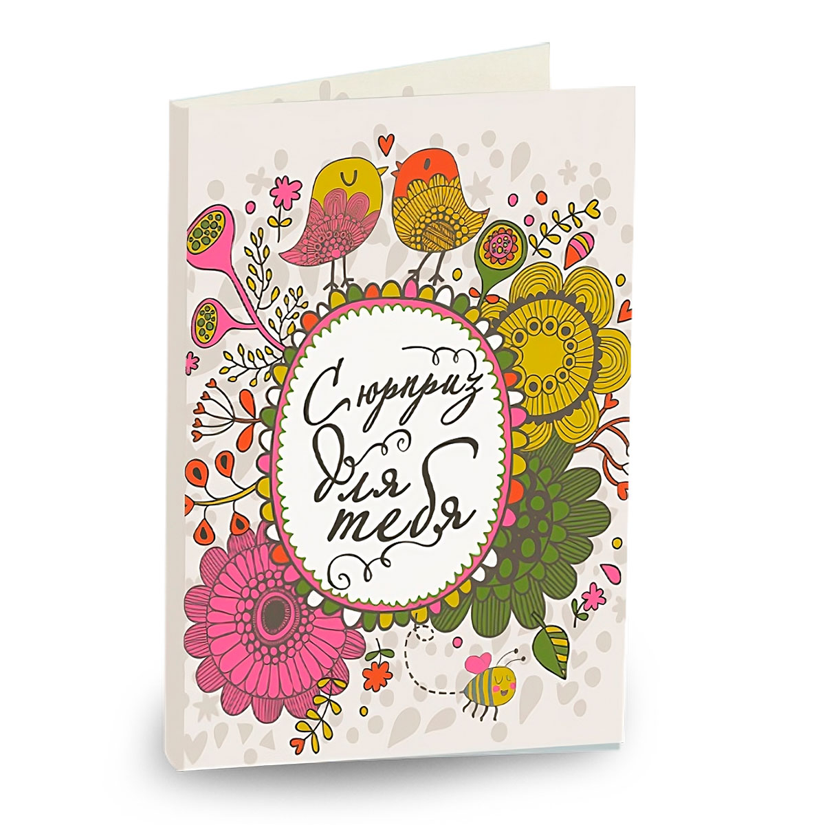 Открытка «Сюрприз для тебя» — это оригинальный и забавный способ передать ваше сообщение, упакованное в радость и волнение неожиданного сюрприза. Оформленная в ярких и жизнерадостных цветах с забавными иллюстрациями, эта открытка создана для того, чтобы вызвать улыбку и радостное ожидание. Она идеально подходит для любого праздника, от дней рождения до юбилеев и специальных моментов. Открытка «Сюрприз для тебя» — это ваш способ добавить волшебства в повседневную жизнь и подарить любимому человеку моменты счастья и удовольствия.